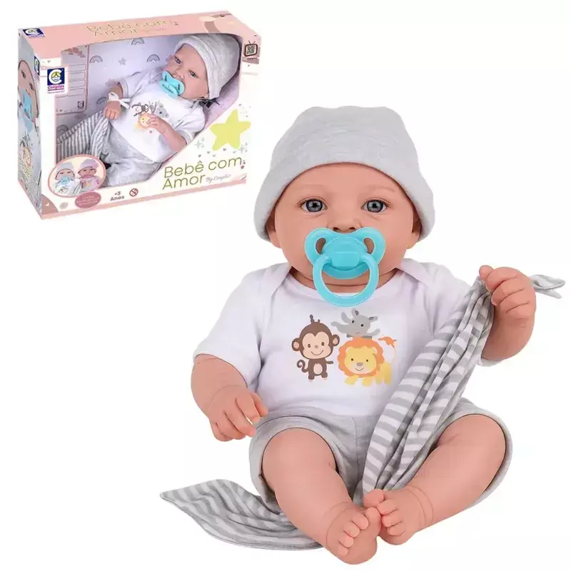 A Boneca Bebê Com Amor Menino Cotiplás é um brinquedo encantador que proporciona momentos únicos de afeto, cuidado e imaginação. Criada com riqueza de detalhes e pensada para transmitir a sensação de realismo, essa boneca estimula nas crianças o instinto de carinho e responsabilidade, aproximando-as do universo lúdico e afetivo do brincar de cuidar de um bebê.