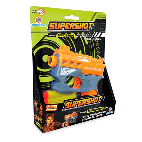 Deixe a imaginação das crianças voar alto com o empolgante Lançador Supershot Space Gun da Polibrinq! Esse brinquedo futurista é ideal para aventuras cósmicas e missões intergalácticas, oferecendo diversão e emoção em cada disparo.